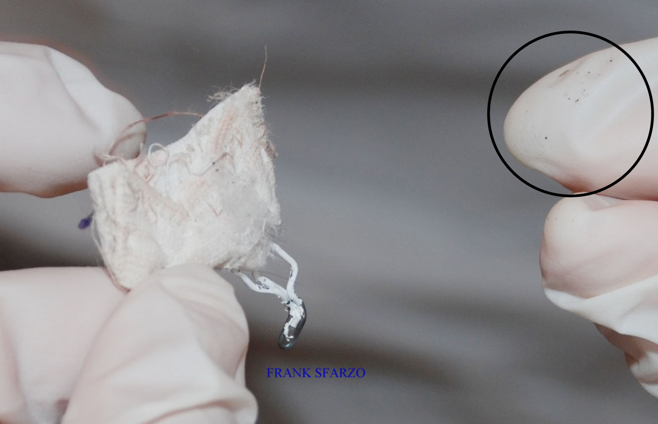 The handling of the clasp when it was retrieved from the scene is shown in the linked video. The investigators, dressed in fancy white outfits, seem to play some kind of game with it. Why the outfits? They do nothing to prevent mixing contamination of the material at the scene. As shown in the closeup picture, the outfits, and their gloves, quickly become contaminated by DNA from various sources at the scene which can then be transferred to the evidence.