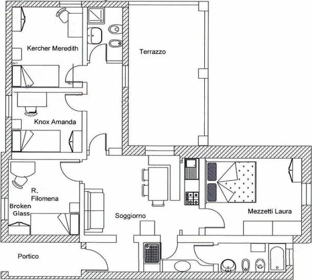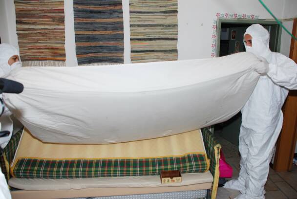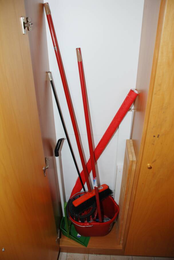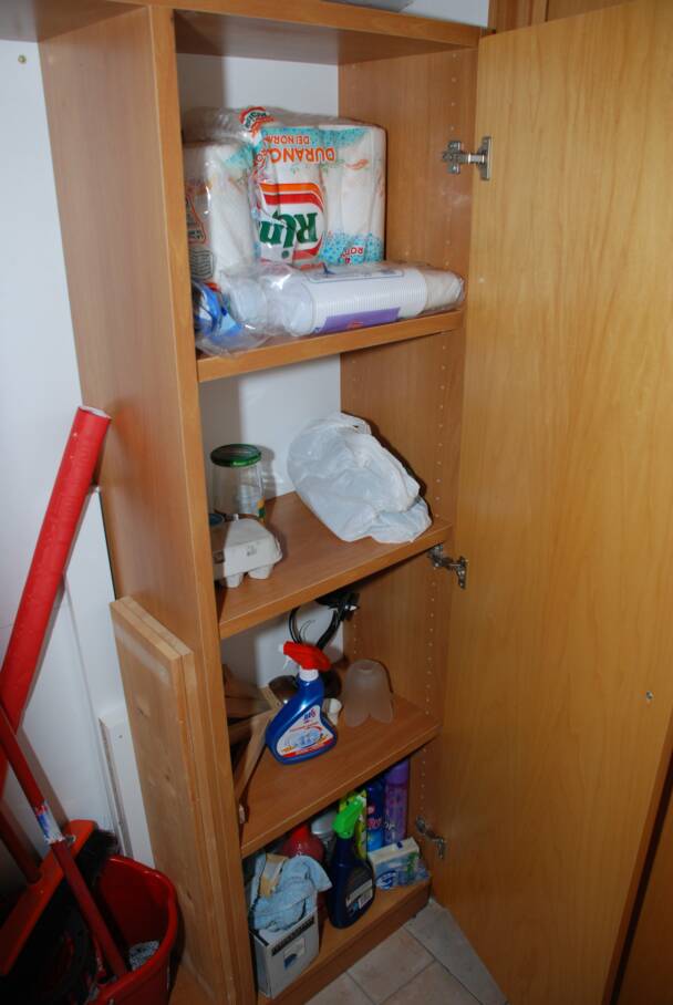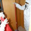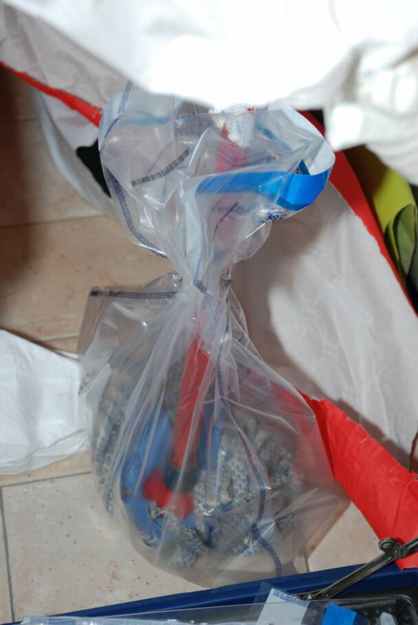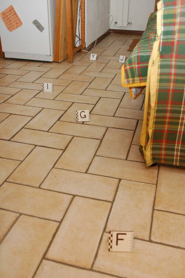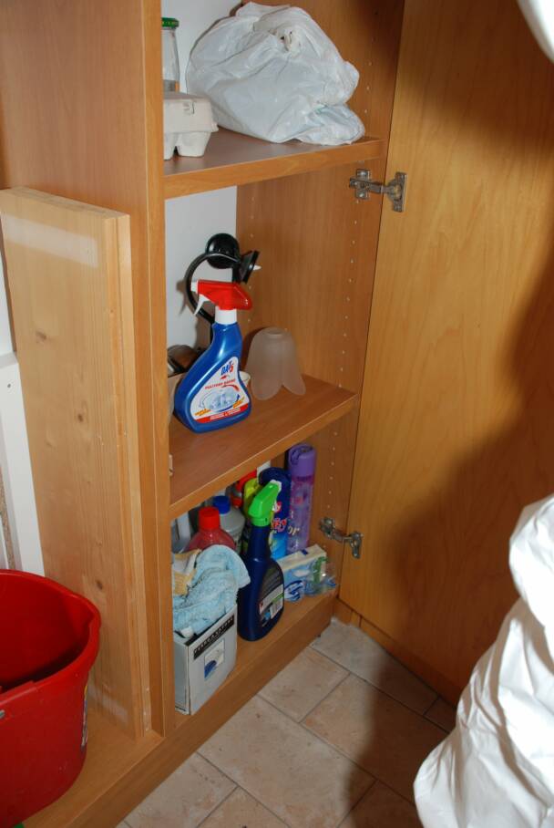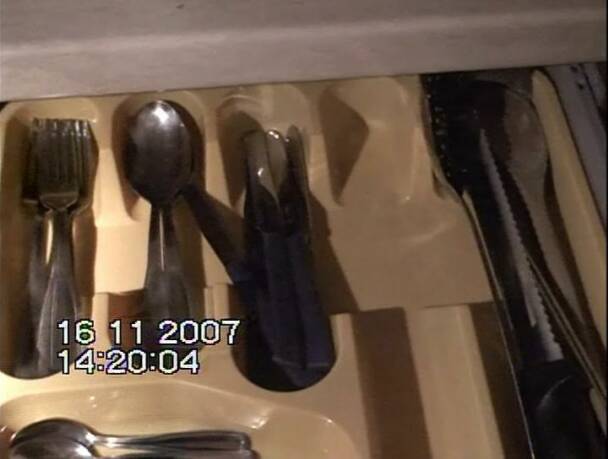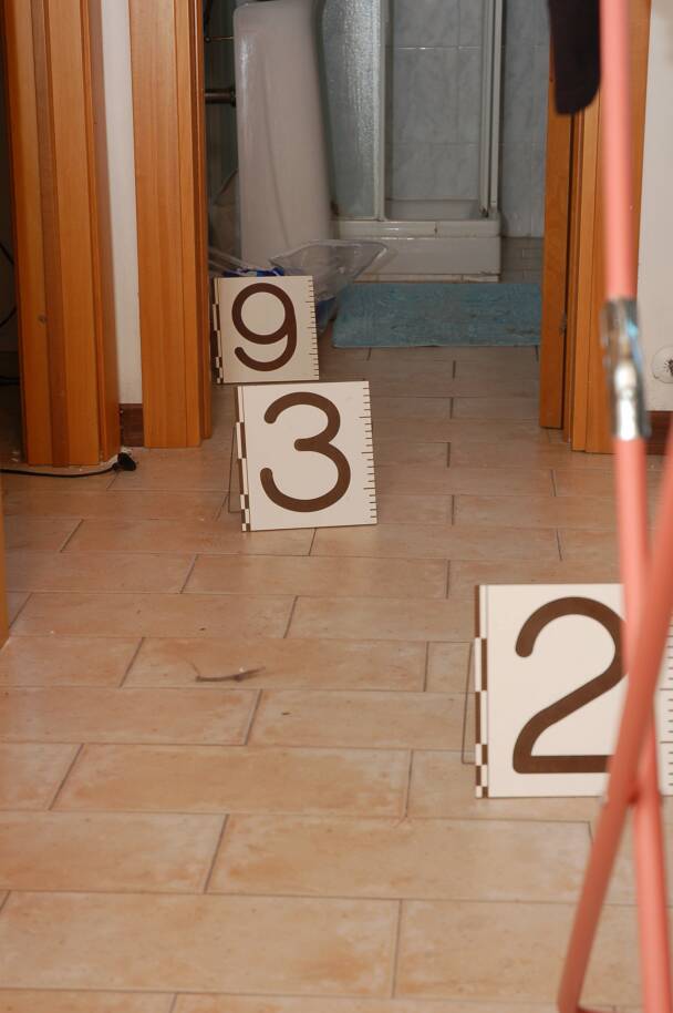 December 18, 2007: Patrizia Stefanoni uses gift wrap located in the hall closet to gift wrap a mop. Another investigator later attempts to correct her error.