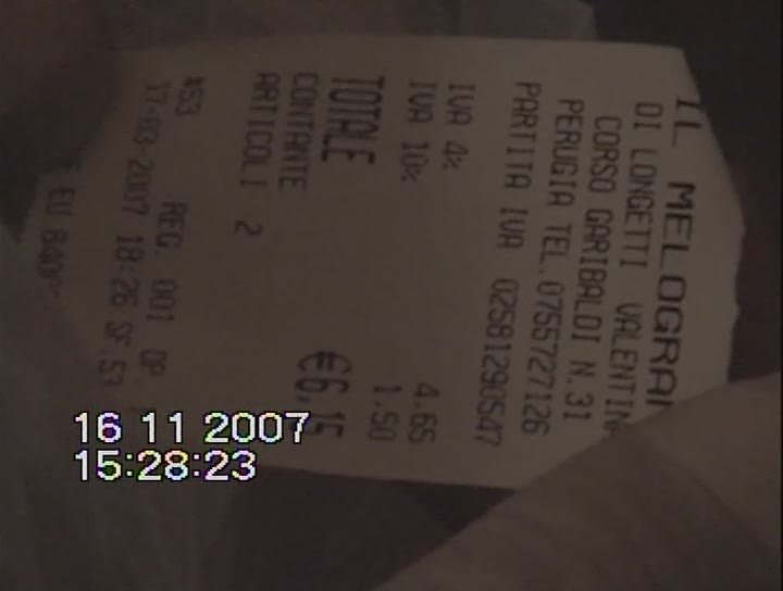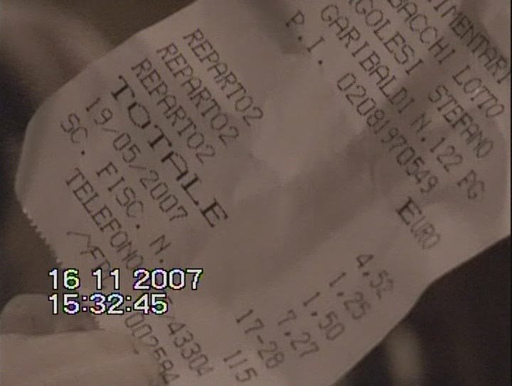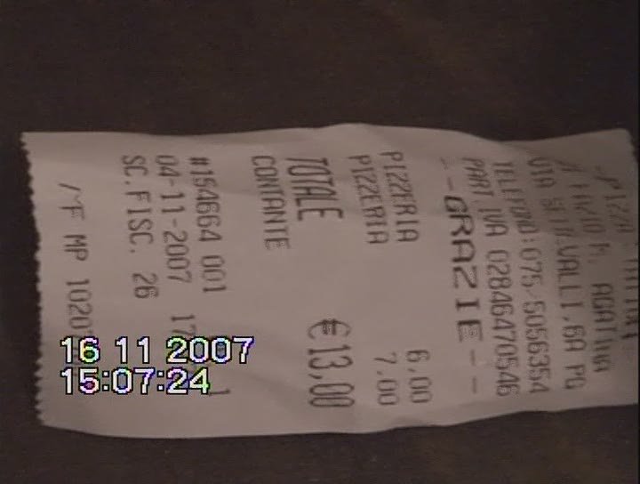 Receipts from Raffaele's apartment showing he bought a pizza (not bleach)