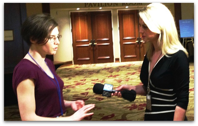 Amanda Knox being interviewed at Portland Innocence Project event