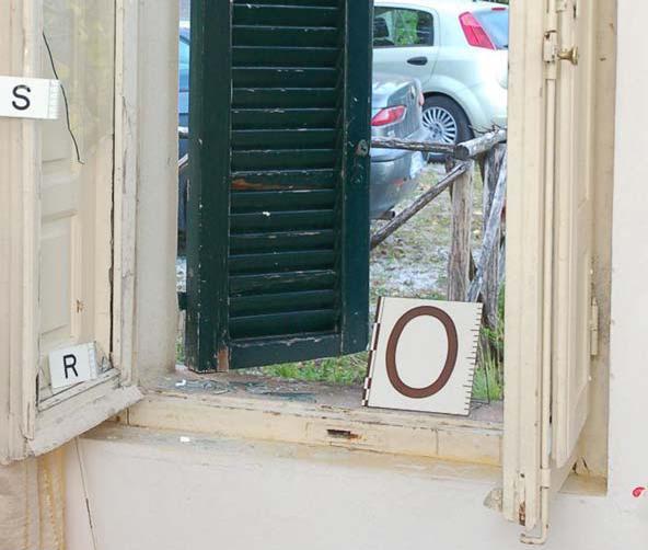 With the dispute over the “break-in”, the first question that comes to mind is just how was the window broken? Several police crime scene photos were reviewed of the found condition of Filomena Romanelli’s room and broken window as well as the exterior wall and grounds. Filomena Romanelli, flat mate of Meredith Kercher and Amanda Knox, had the room next to the door entrance in the four room upstairs cottage flat. The furniture in her room consisted of a twin sized bed, a nightstand, freestanding wardrobe closet, and a desk. The only outside window appeared to be nominally two feet wide by four feet high as shown in the photo below. This window was in turn comprised of two casement glass windows which swung horizontally to the inside to open and could be latched closed together. A set of dark green louvered shutters were located on the outside and a set of solid white shutters were located on the inside. Both the inside and outside shutters could also be latched closed.