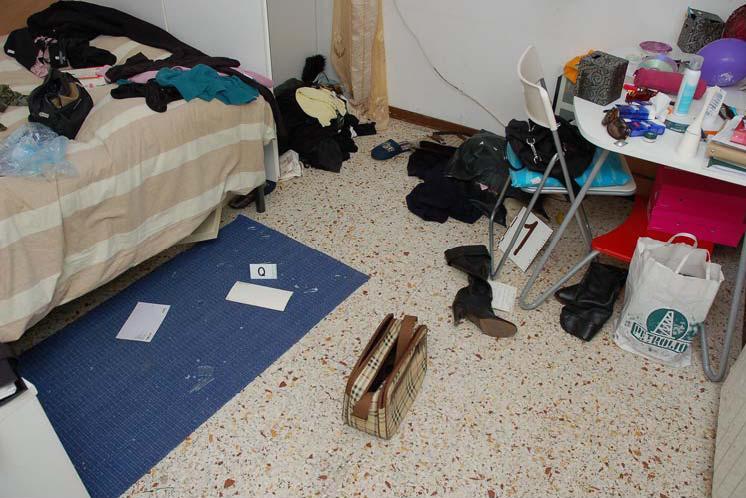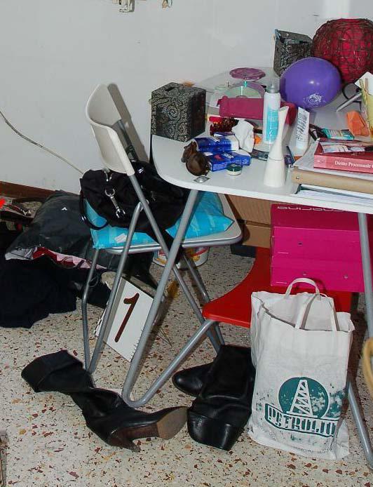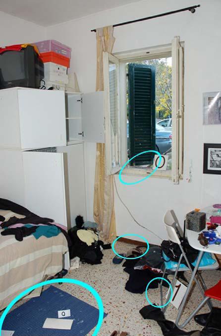 Filomena Romanelli reported finding glass fragments on top of some clothing and her notebook computer and one officer reportedly observed the same thing. These observations were also touted by the prosecution as indicating the window was broken after the room was ransacked and thus meaning that the break-in was staged.