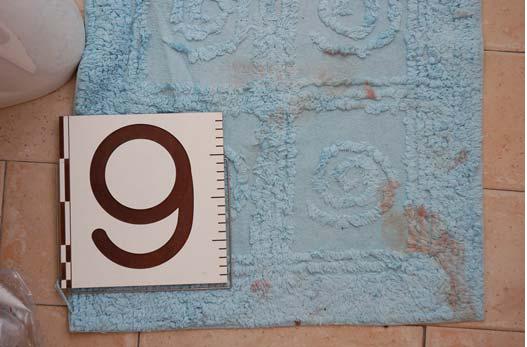The photo above shows the print that was left on the bathmat in the bathroom. This print was made in bloody water.