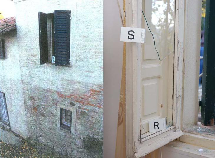 2. Clear signs that the flat had been broken into through a window in Filomena’s room – these initial signs included a broken window pane, numerous glass fragments randomly strewn about the floor of the room, impact damage to the inside solid wood shutter with impacted glass imbedded in it, a large rock found inside the room, and both casement windows open.