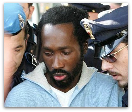 Rudy Guede was a drug dealer that was well known by the police. He became a suspect in the Meredith Kercher murder after his bloody fingerprint was discovered at the crime scene. When police tried to contact Guede they discovered he had fled to Germany. He was stopped in Germany trying to board a train without a ticket and was immediately extradited back to Italy. Guede was confronted with overwhelming DNA evidence that put him at the crime scene at the time if the murder.