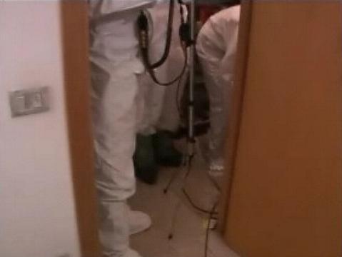 The video above shows investigators walking from Meredith's room into a crowded hallway. Keep in mind, the floor in the hallway would later be tested with luminol. This video also shows Patrizia Stefanoni wrapping a mop handle in what appears to be gift wrap from the hall cabinet. We are not sure why this was done, we just thought it was interesting.