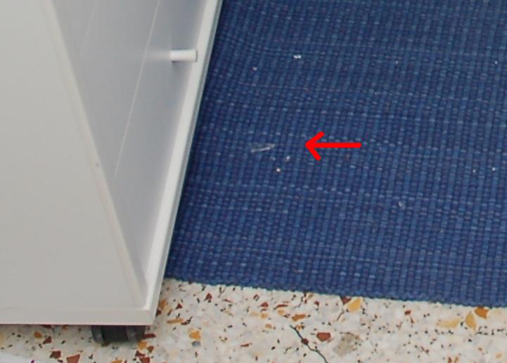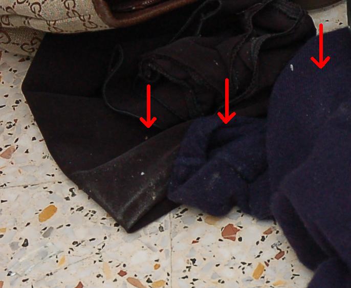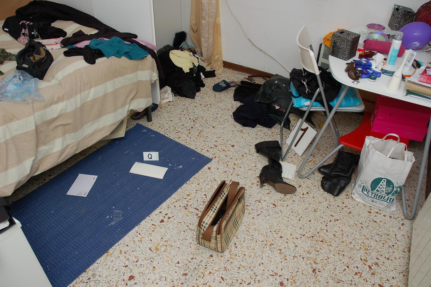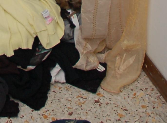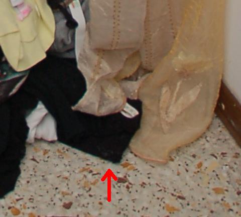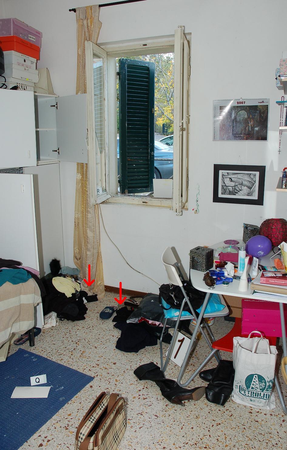 The next photograph shows where the clothes on the floor were possibly stepped on by Rudy Guede when he climbed through the window and entered the room.