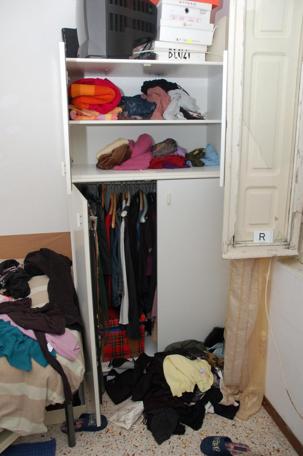 The next photo shows that the armoire is actually not emptied out. The clothes on the floor appear to be a pile of dirty clothes. This photo shows that the clothing on the floor was not thrown there in an attempt to make the room look ransacked. Filomena's room was just a mess.