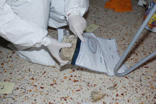 Would Amanda and Raffaele have really thought to throw the rock down on the floor causing an impact to make it look as if it had been thrown? Would they have actually thrown it down on the bag causing it to land where it is seen in the photographs?
